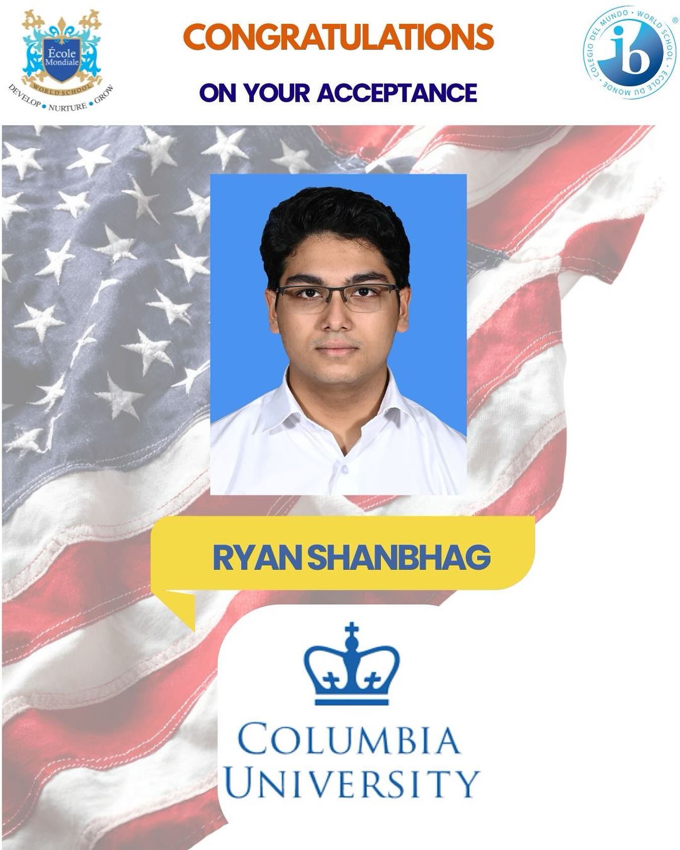 Ryan’s journey at École Mondiale World School reflects his dedication, resilience, and passion for learning. From nurturing academic excellence to providing personalised university guidance, we are honoured to have supported him every step of the way.
